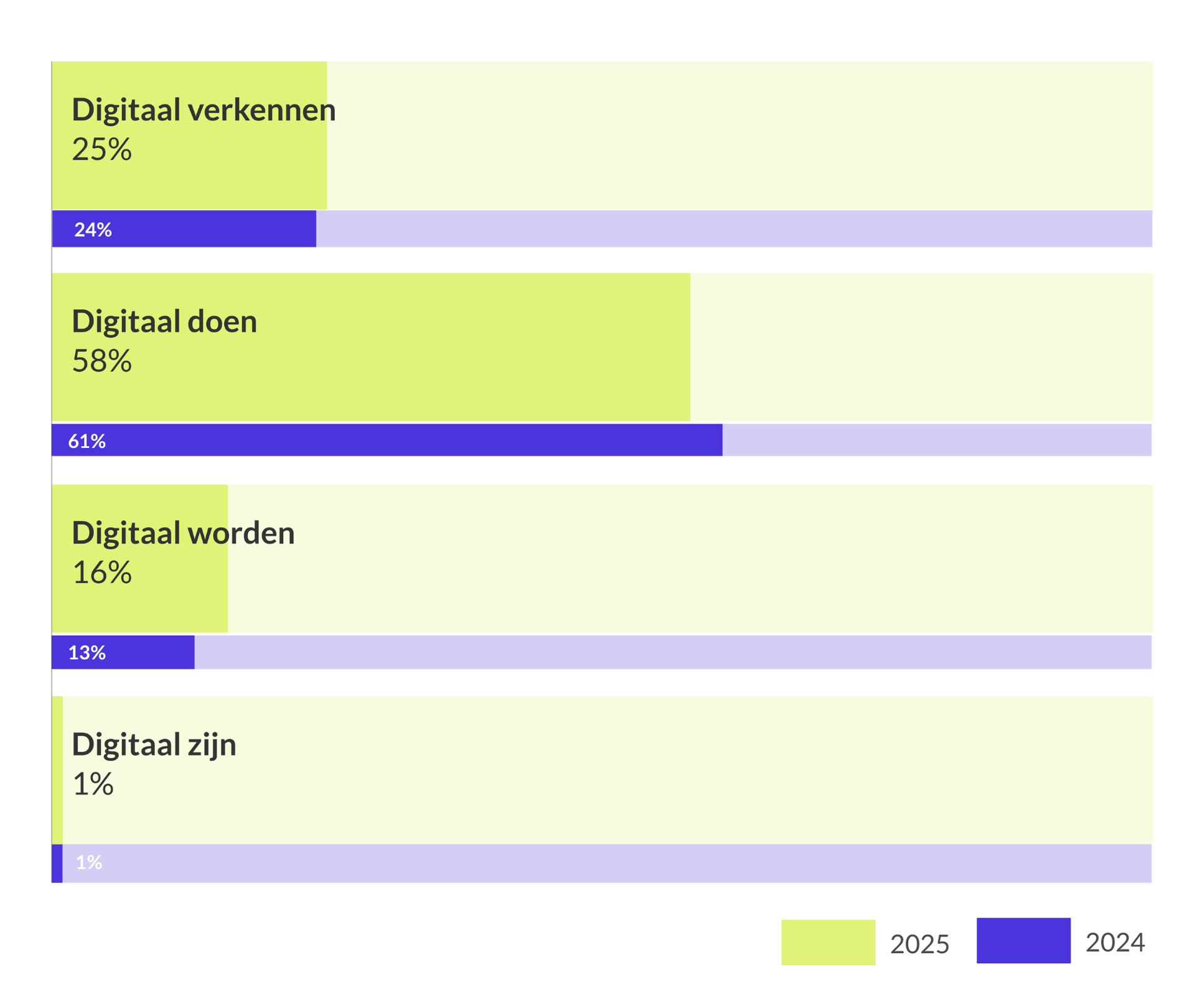 Slechts 1 op de 6 organisaties zit in de fase van “digitaal worden” of “digitaal zijn”.